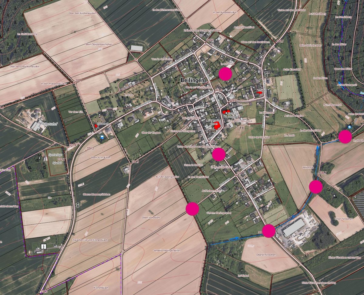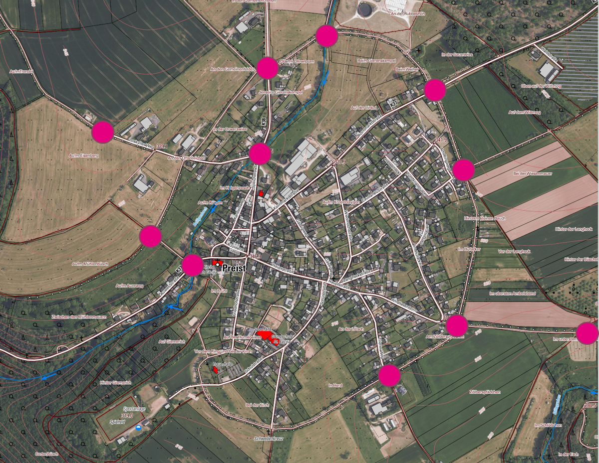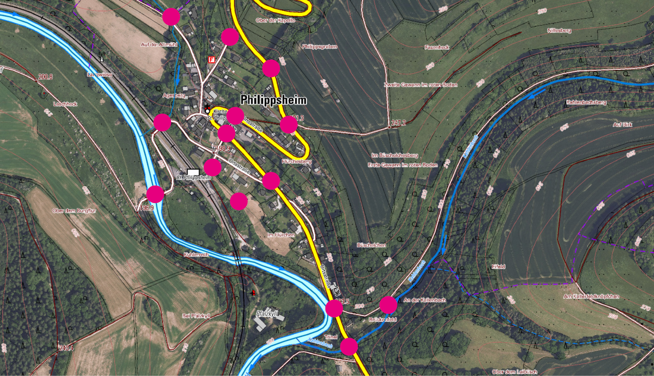 Bei den Ortsbegehungen wird das Planungsbüro durch Vertreter der Ortsgemeinde, der örtlichen Feuerwehr, der Verbandsgemeindeverwaltung und der Verbandsgemeindewerke unterstützt. Gemeinsam werden die bereits bekannten Wirkungsbereiche und Einsatzstellen früherer Ereignisse bewertet sowie die in Hochwasser- und Starkregengefahrenkarten ausgewiesenen potenziellen Gefahrenbereiche der Ortslagen überprüft.
