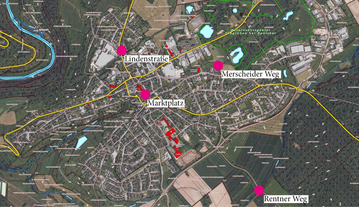 Die einzelnen Stationen der Ortsbegehung sind dem Kartenausschnitt zu entnehmen. Eine nähere Information zu den einzelnen Problemlagen erfolgt im Rahmen des Bürgerforums.