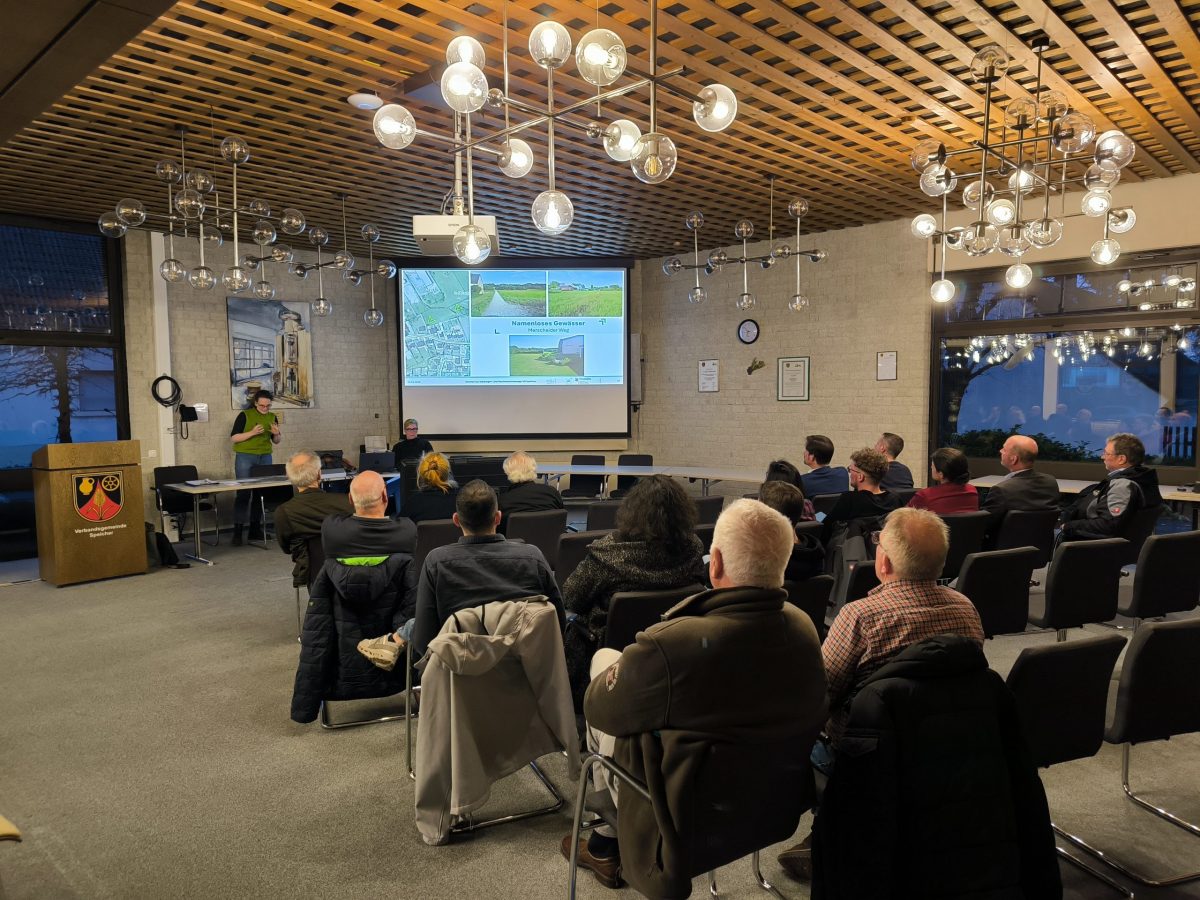 Die Projektbearbeiterin Caroline Liebscher stellte im Rahmen der Veranstaltung die Starkregengefahrenkarten sowie die Hochwassergefahrenkarten für die Stadt Speicher vor. Dabei erklärte sie die Inhalte und Darstellungen der Karten, ging auf deren Aussagekraft ein und zeigte zugleich die Grenzen der zugrunde liegenden statistischen Berechnungen auf. Ein besonderer Schwerpunkt lag auf der privaten Eigenvorsorge: Angesichts zunehmender extremer Wetterereignisse wurde die Bedeutung individueller Schutzmaßnahmen und der Eigenverantwortung jedes Einzelnen deutlich herausgestellt.