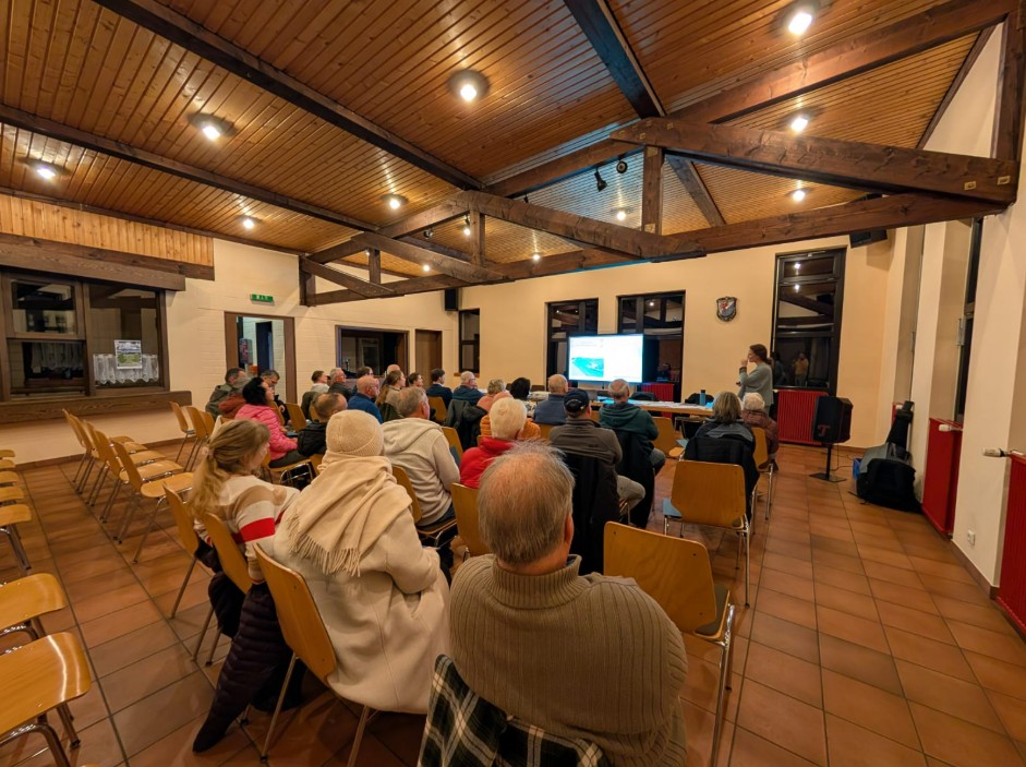 Die Ereignisjahre 2021 und 2024 waren entsprechend der großen Betroffenheit vieler Haushalte noch sehr präsent und die Hoffnung nach (individuellen) Lösungen groß. Jedoch wurde in der Diskussion deutlich: es gibt nicht für jedes Problem eine pauschale Lösung, die leicht umsetzbar ist,- zumindest nicht für Ausmaße der Katastrophenereignisse, die in den letzten Jahren immer häufiger wurden. Dennoch gibt es durchaus Perspektiven und Chancen, die bei kleineren Starkregen- und Hochwasserereignissen für Abhilfe sorgen und dazu verhelfen, sich bestmöglich zu schützen. Diese Möglichkeiten sind sowohl von den öffentlichen Zuständigkeiten wahrzunehmen als auch von Privathaushalten, im Rahmen der privaten Eigenvorsorge. Neben den grundsätzlichen Möglichkeiten der kommunalen Starkregen- und Hochwasservorsorge, die im weiteren Projektverlauf für Auw an der Kyll entsprechend der örtlichen Gegebenheiten konkretisiert werden, wurden die grundsätzlichen Möglichkeiten und Empfehlungen der privaten und persönlichen Eigenvorsorge vorgestellt. Was dazu gehört, wie man sich vorbereitet und im Ereignis verhält, wie man das eigene Wohnhaus bestmöglich hochwassersicher macht und wo man weiterführende Informationen sowie Ansprechpartner:innen findet: hierzu wurden die Anwesenden umfassend informiert.