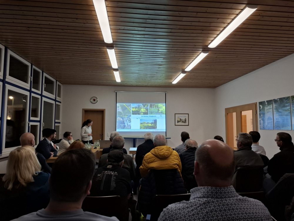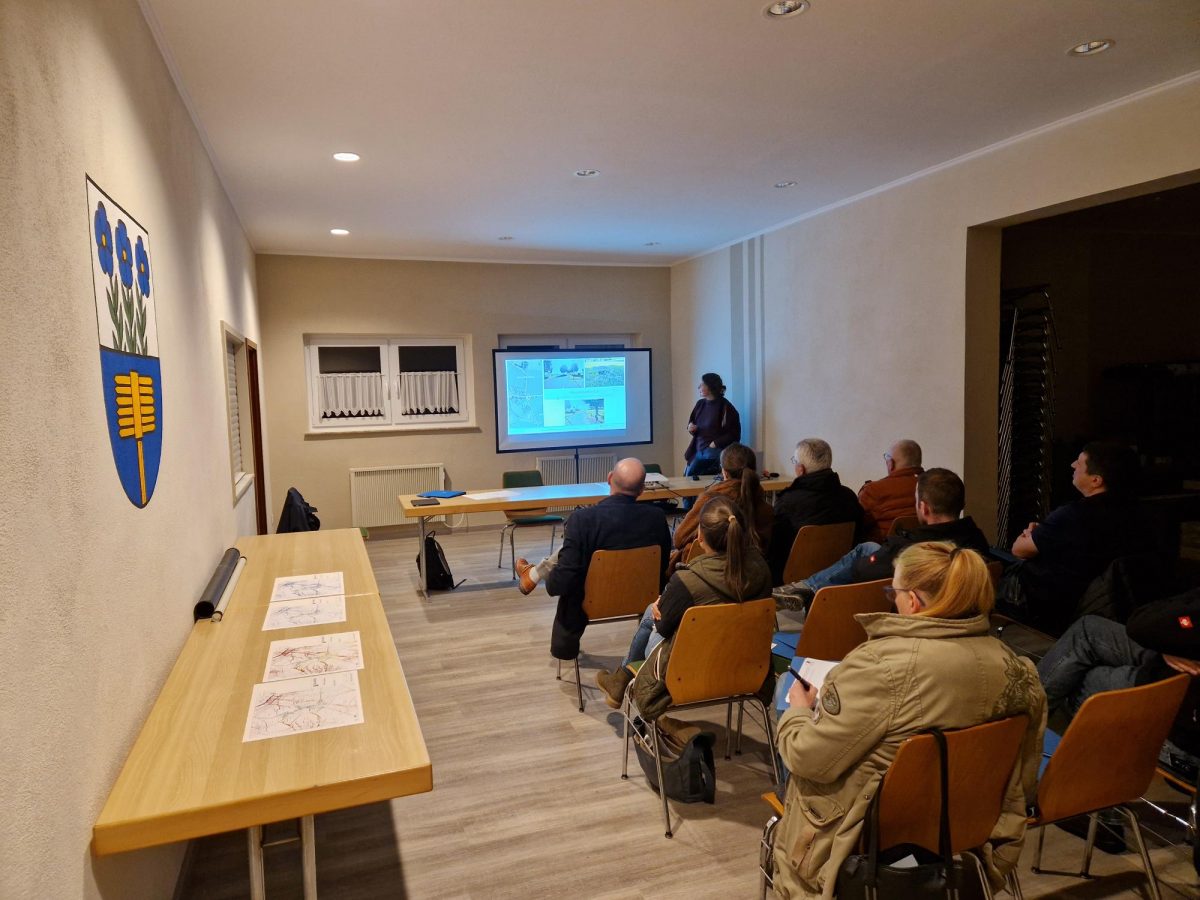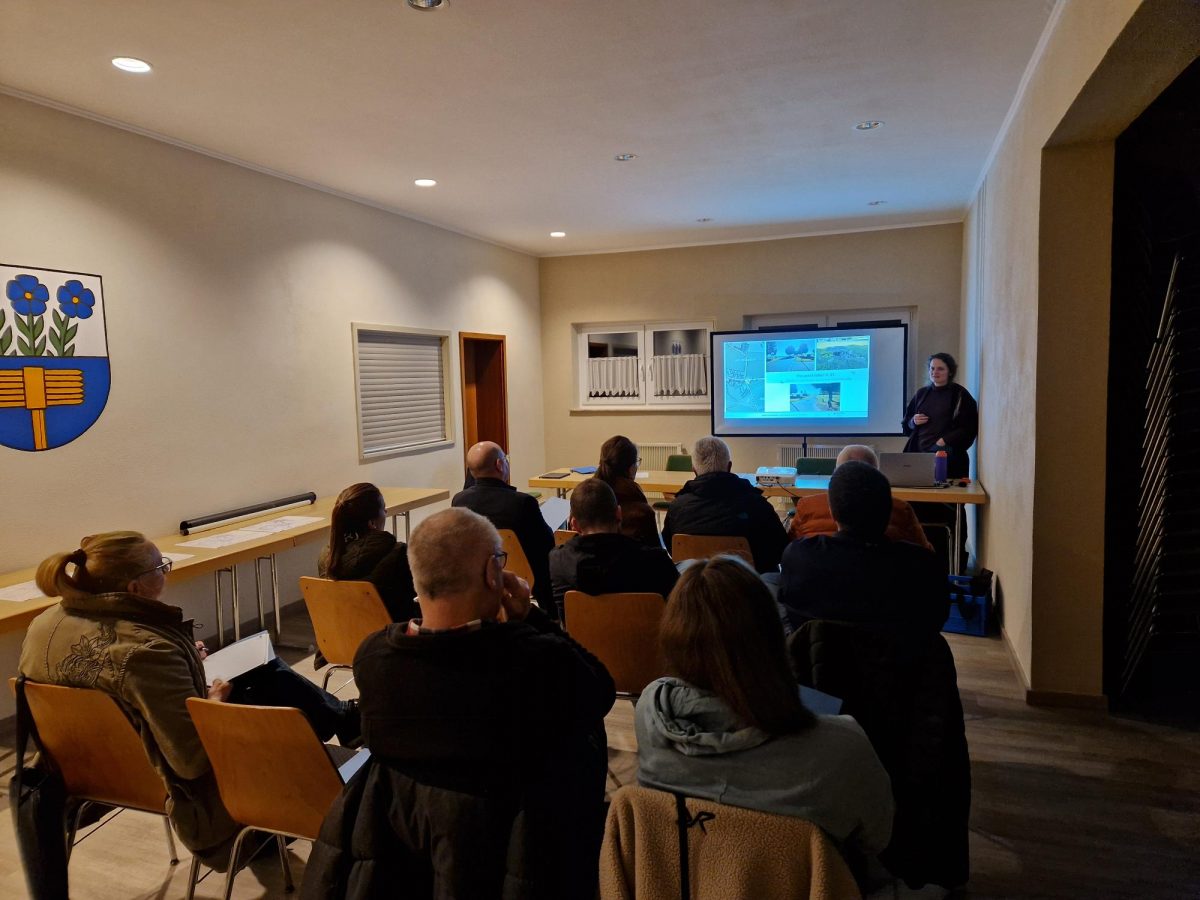 Zunächst erfolgt eine Präsentation zu den Belangen der Hochwasser- und Starkregenvorsorge und eine Übersicht über die generellen Gefährdungsbereiche im jeweiligen Ortsteil. Zudem werden die bestehenden Hochwassergefahren- sowie die Sturzflutgefährdungskarten in der Präsentation vorgestellt und erläutert. Aus den Starkregengefahrenkarten und den Erkenntnissen aus den vorangegangenen Ortsbegehungen, mit Vertreter:innen von Verbands- und Ortsgemeinde, Feuerwehr und den VG-Werken, wurden die (potenziellen) Problembereiche und neuralgischen Punkte zusammengestellt, die sich bei vergangenen Starkregen- und Hochwasserereignissen bereits als (besonders) kritisch erwiesen haben oder an denen es zukünftig problematisch werden könnte.