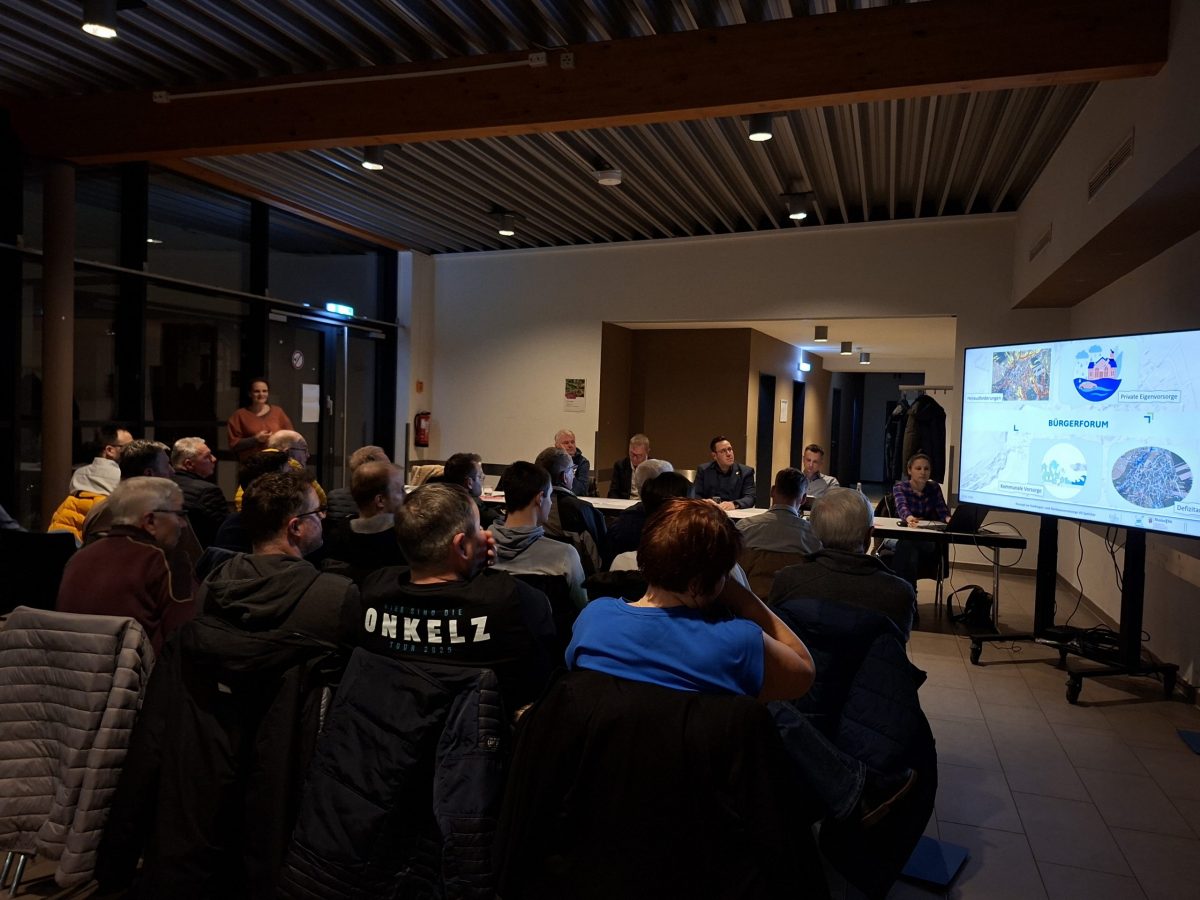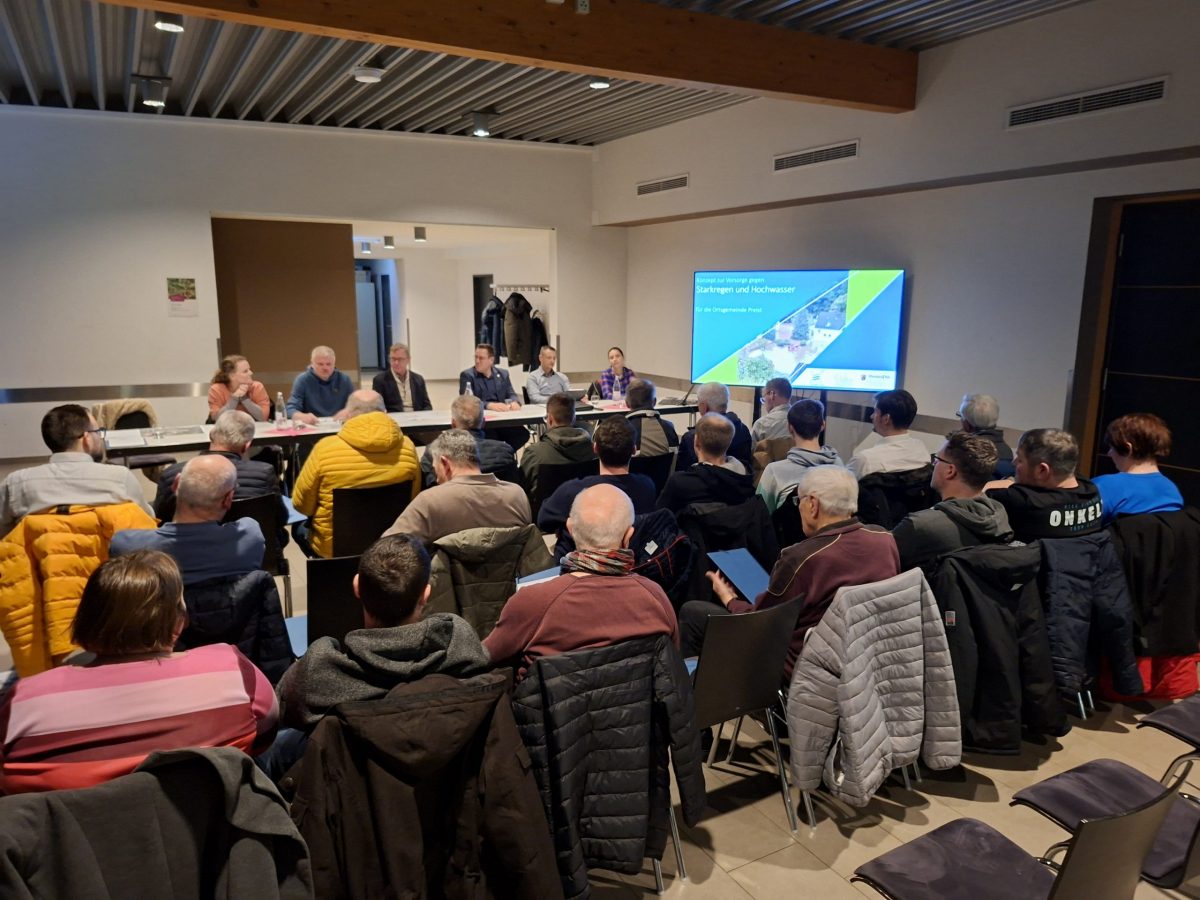Das Projekt zur Erstellung des Starkregen- und Hochwasservorsorgekonzepts für die Ortsgemeinden der Verbandsgemeinde Speicher begann offiziell mit der öffentlichen Auftaktveranstaltung am 13. November 2025 im Rathaus in Speicher. Die Termine für die ortsbezogenen Bürgerveranstaltungen können Sie der Spalte rechts entnehmen oder unter Termine nachblättern. Die Veranstaltungstage werden außerdem kurz vor den Veranstaltungen nochmals im Mitteilungsblatt „Et Bletchen“ der VG Speicher bekanntgegeben.